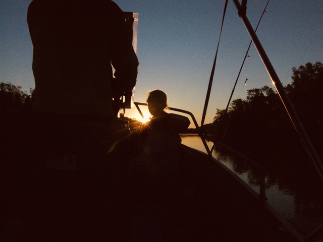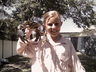 One day stands out vividly. We had collected all our crab pots, a very successful morning with eight mud crabs, and cruised along the boat ramp ridge. Three crocodiles were sunbathing nearby and one, as long as our boat glided past us, all my dad did was squeeze his knees together and put his finger on his mouth to say shh. Heart racing, awe-struck, we carried on, loaded the boat, and eventually settled by the river.